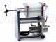 La máquina está montada en un carro con ruedas en acero inoxidable y un recipiente de recuperación de líquido.
