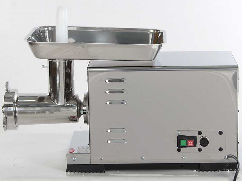Gracias al motor eléctrico de inducción en servicio continuo de 1800 W alimentado por 220V, la picadora de carne es para uso profesional.