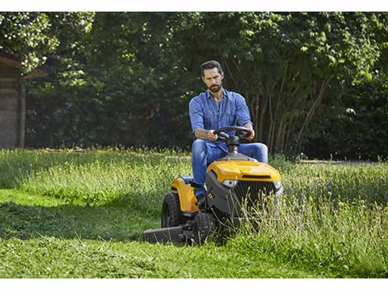 El plato de corte de 98 cm lo hace perfecto para trabajar en grandes superficies y obtener un rendimiento excelente en todo momento.